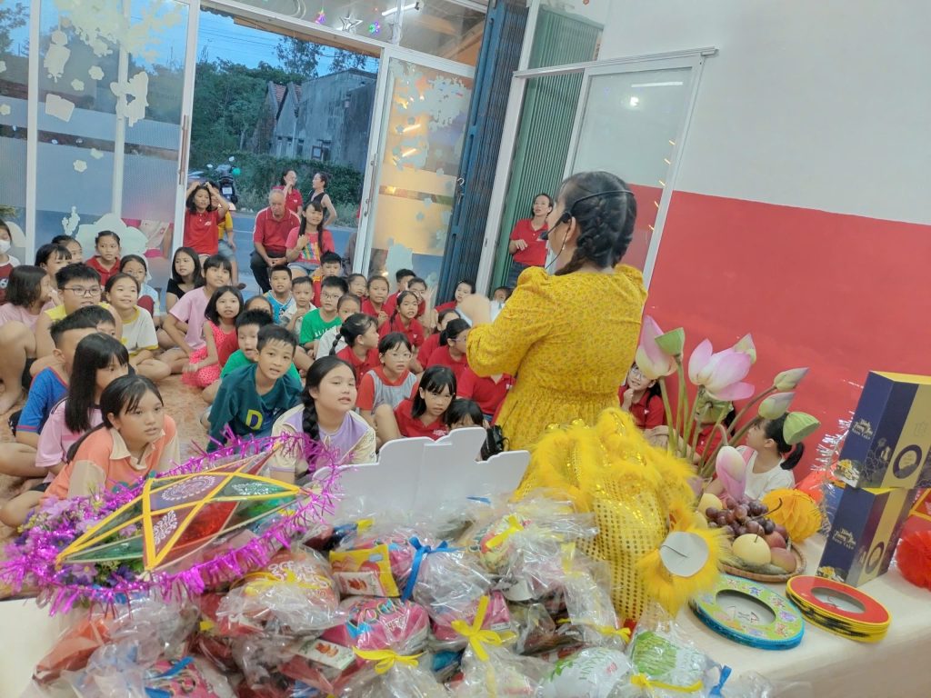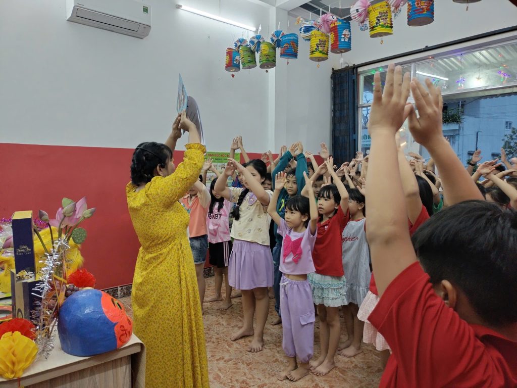 🎶 Những bài hát Trung Thu vang lên, tạo nên không khí vui tươi, ấm áp.